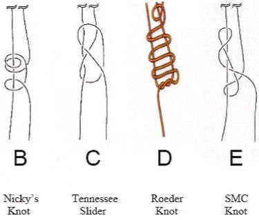 A segurança do laço do Roeder "depende predominantemente do número de voltas iniciais em torno da parte fixa" (Hage, 2008).